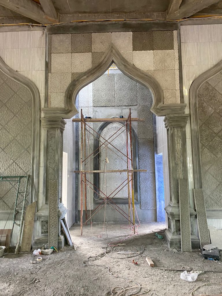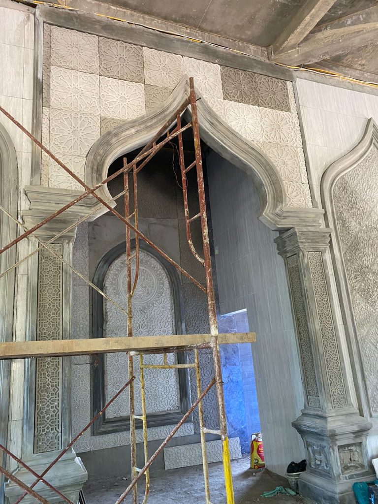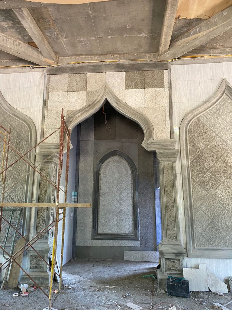 Pengerjaan GRC Mihrob Imam Masjid Taqwa Muhammadiyah Paya Mabar Stabat, Kabupaten Langkat Sumatera Utara